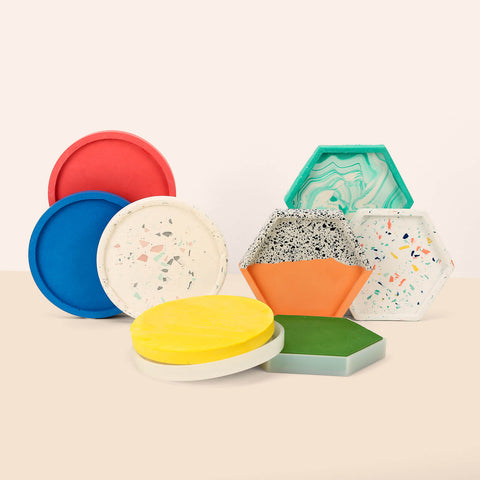 Alles, was Sie brauchen, um zu Hause ein Jesmonite- und Terrazzo-Profi zu werden! Beschäftigen Sie Ihre Hände mit diesem umweltfreundlichen Bastelhobby. Möchten Sie ein Schmucktablett oder einen Blumentopf herstellen? Wir geben dir Deckung!